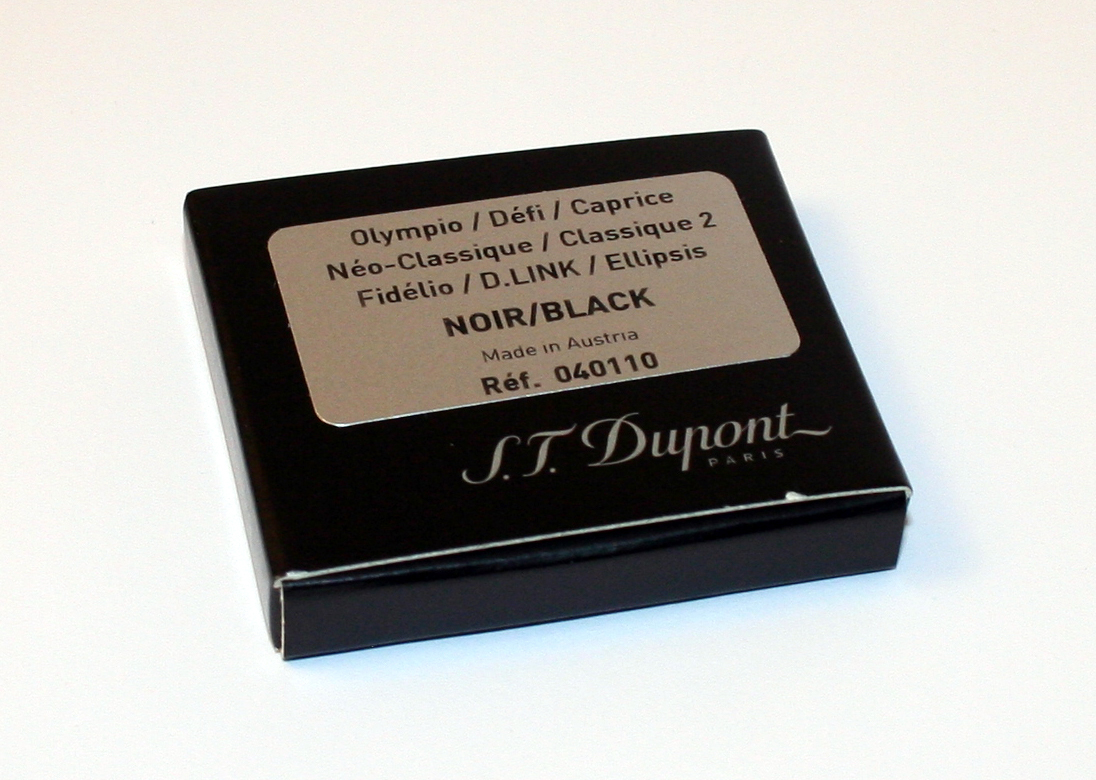 Cartouches d'encre. Pour stylos S.T. Dupont " Olympio", "Défi", Élysée", "Liberté", Mon Dupont, "Néo-Classique", "Classique 2"," D-Link/Caprice", Ligne D, "Fidélio" et "Ellipsis". Boîte de 6 cartouches.