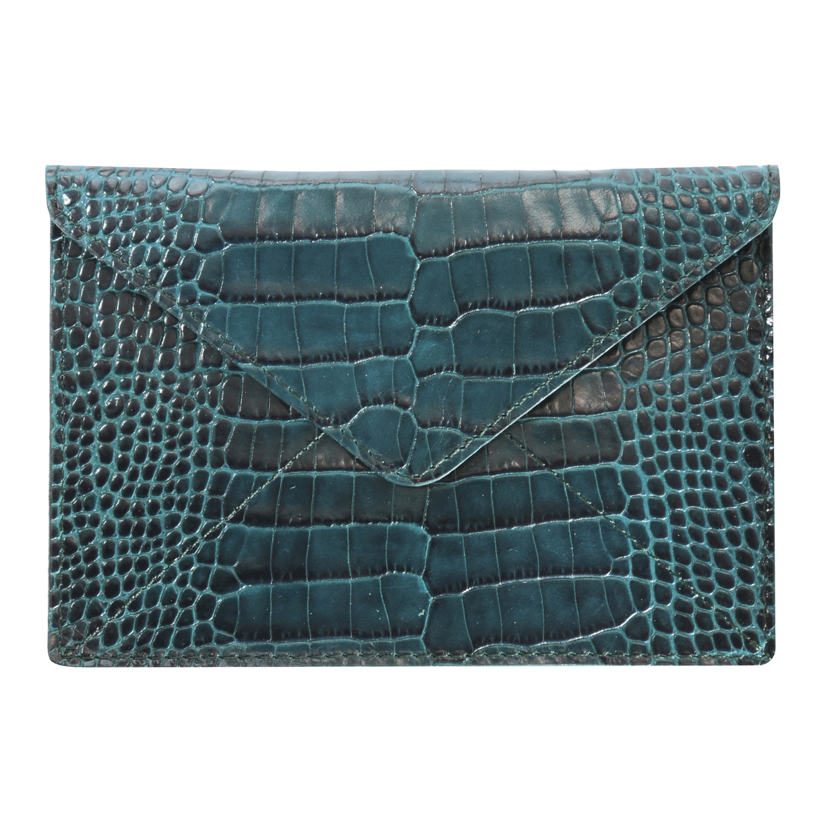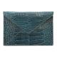 Pochette pour papiers. Fermeture par bouton pression. Cuir de veau pleine fleur. Jeu d'écailles à effet croco.
