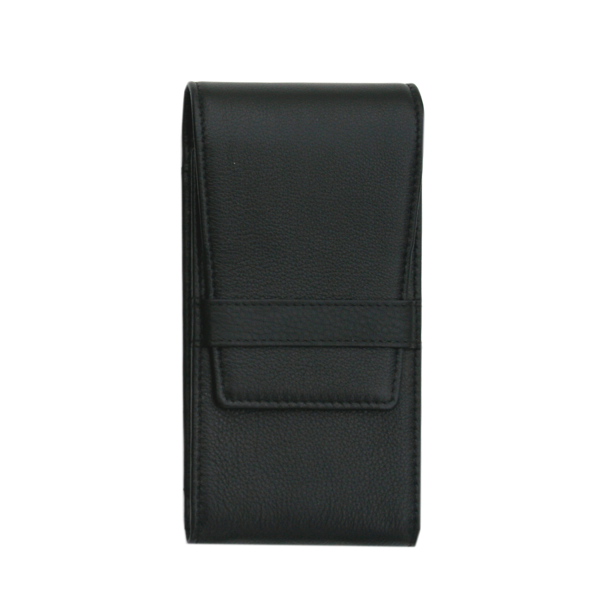 Étui luxe avec rabat pour 4 stylos. Cuir noir.