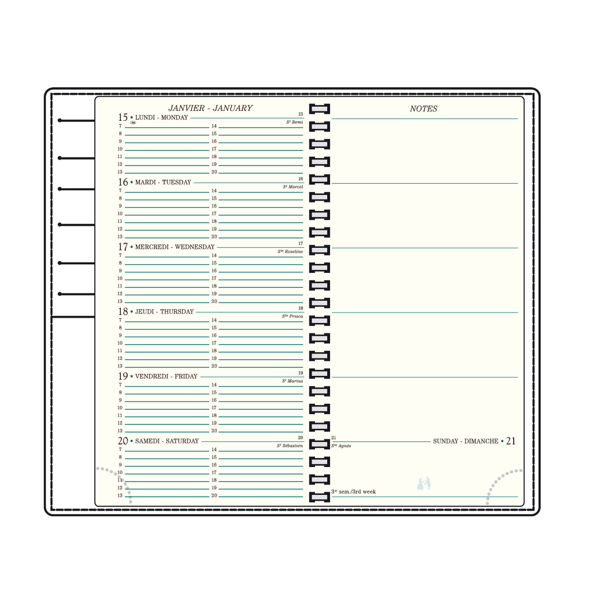 Recharge calendrier 2026 pour agenda Mignon reliure spiralée Format AS18 (H: 18 cm). Une semaine sur 1 page.