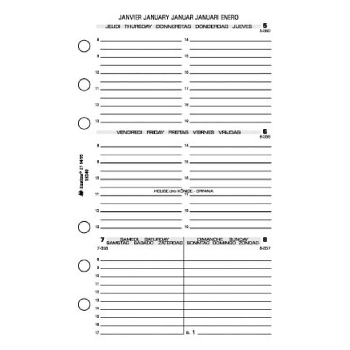 Recharge pour format 17. Une semaine sur 2 pages horizontal.