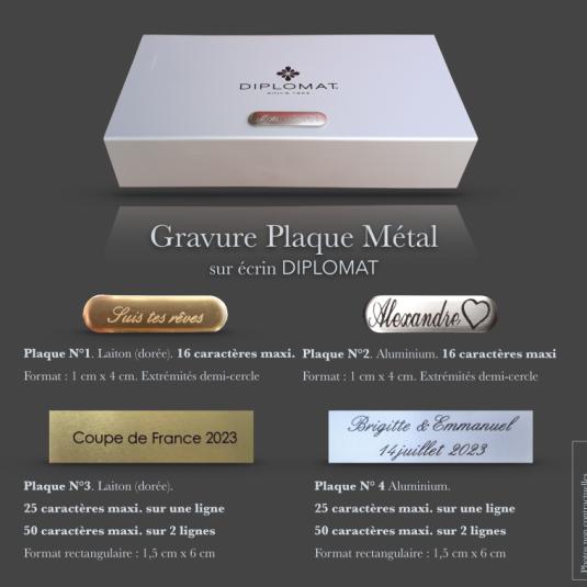 Un format et deux finitions possibles. Sélectionner le modèle de plaque, la typo et le texte en cliquant sur "GRAVURE + 15 euros".