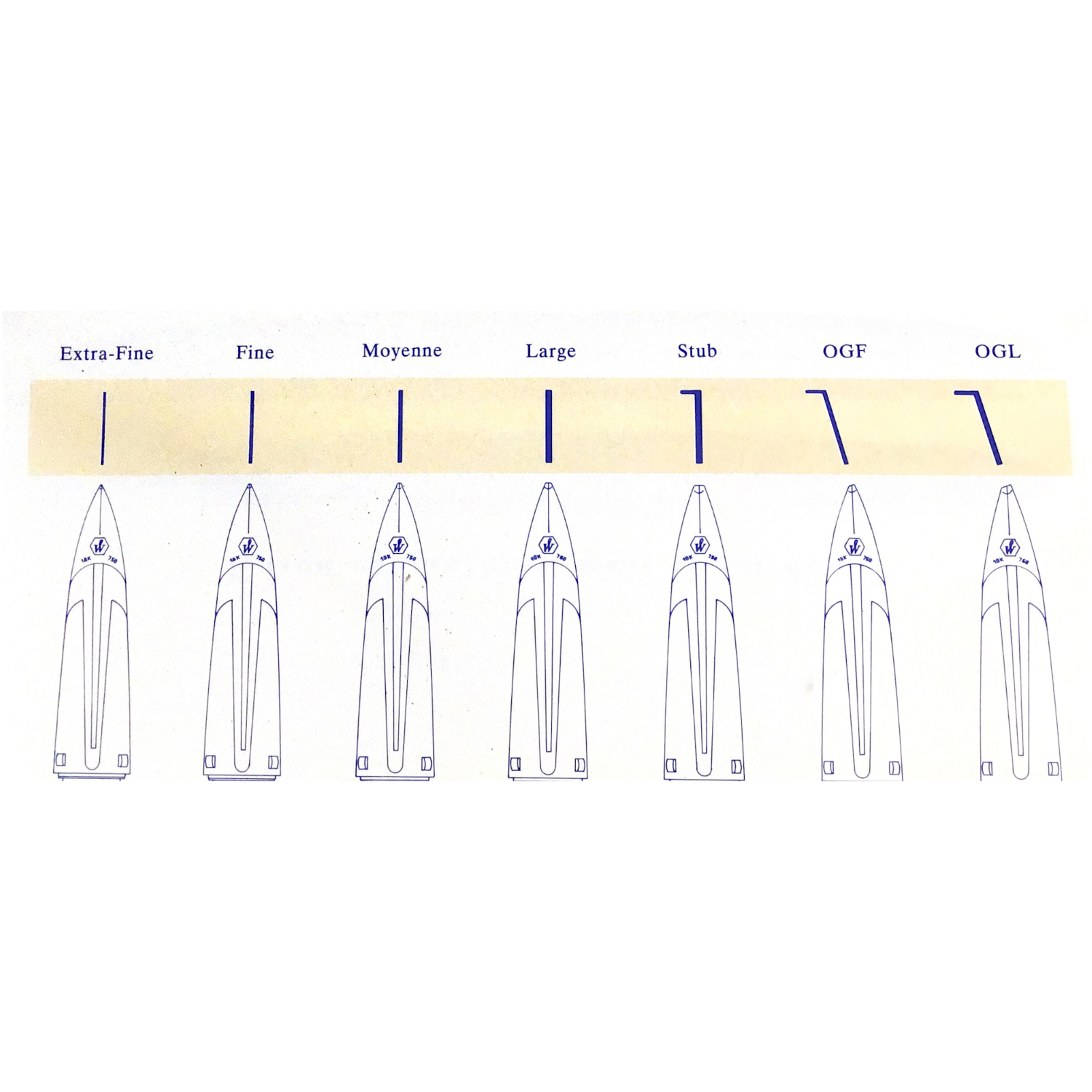 Bloc plume pour stylo Waterman EDSON version or.. Plume or 18 cartas. Version bleue.