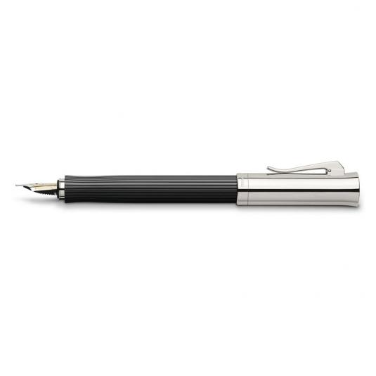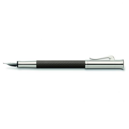 Stylo plume à cartouches. Résine précieuse. Guilloché noir. Plume or 18 carats.