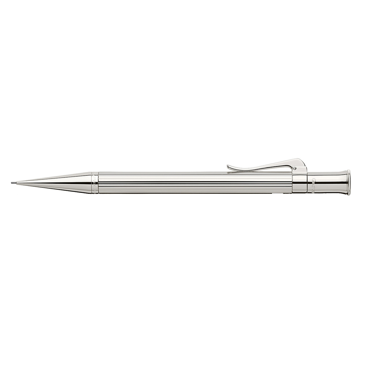 Robustesse du mécanisme. Agrafe galbée montée sur ressort. Ligne svelte et équilibrée. Corps plaqué platine. Mines 0,7 mm. Livré dans son écrin luxe et avec sa garantie Graf von Faber-Castell.