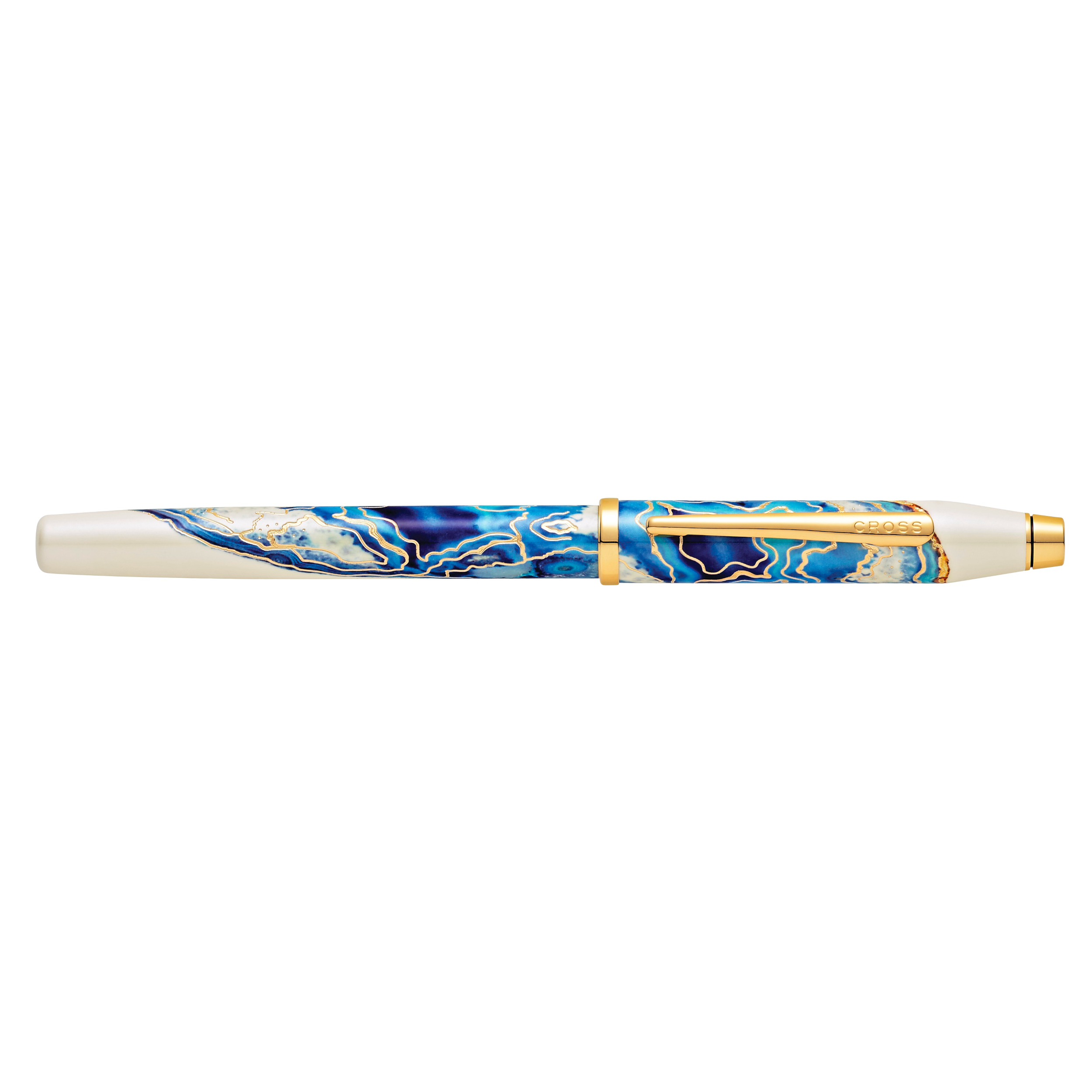 Inspirés par les merveilles de notre planète Terre, les stylos Wanderlust évoquent des canyons de feu, des sommets de montagne glacés, des mers bleu cristal et des forêts tropicales verdoyantes. Des motifs riches et tourbillonnants attirent l'attention finement soulignés par de délicates gravures métalliques et des couleurs éclatantes. Fermeture à capuchon. Peut recevoir une recharge bille Cross de type Jumbo.