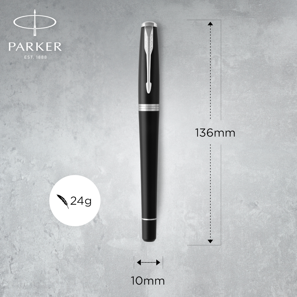 Un style distinctif pour des performances remarquables. Urban attire l’attention et conduit la tradition plus que centenaire de PARKER sur de nouveaux territoires d’expression. Avec son design incurvé si caractéristique et toute une gamme de finitions, il a été conçu pour épouser votre style personnel et donner plus de poids à vos écrits. Rollerball à capuchon. Laque noir noir mat au toucher poudreux. Le polissage mat renforce la qualité exceptionnelle de sa finition. Rehaussé d’attributs finition chromée. . Stylos fabriqués en France dans le centre d'excellence de Saint-Herblain (44).