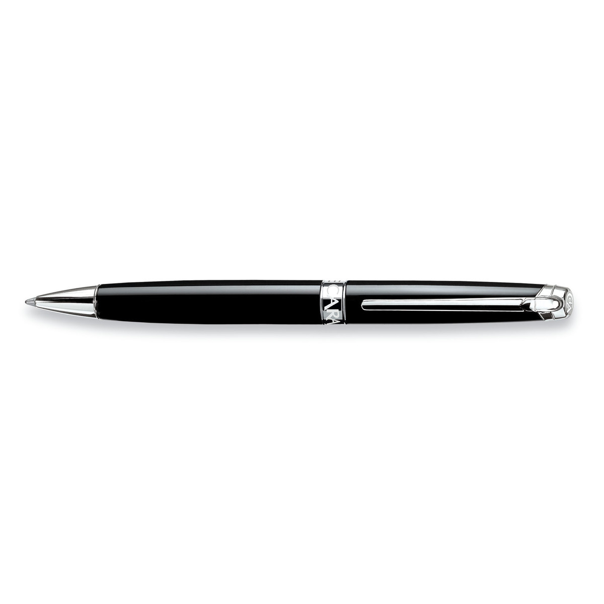 Stylo bille à mécanisme à rotation. Laque noire ébène. Attributs argentés rhodiés. Caran d'Ache s'inspire des plus belles teintes du lac Léman pour créer une collection toute en contrastes. Livré dans son écrin luxe. Fabriquée en Suisse. Garantie internationale à vie.