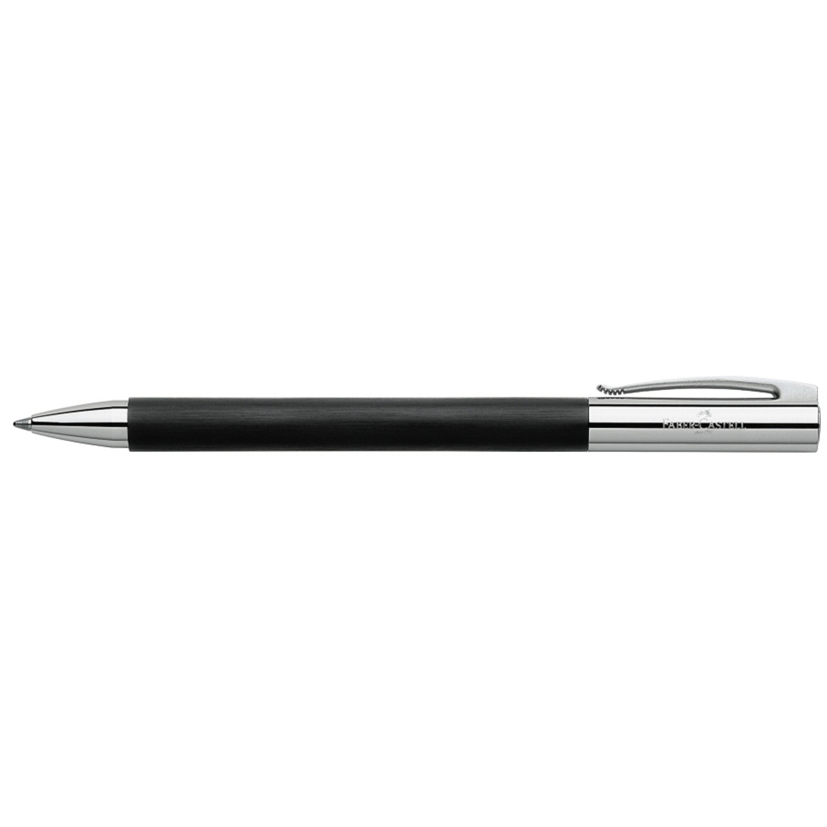 Stylobille à mécanisme à rotation. Corps en résine noire. Attributs chromés. Clip à ressort. Livré dans son écrin luxe et avec la garantie Faber-Castell.