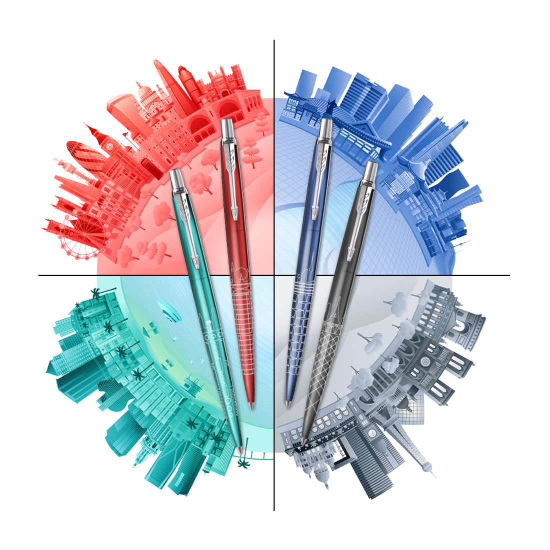 • La silhouette de la ville habilement gravée au laser et sa finition laquée turquoise témoignent du savoir-faire de Parker et confèrent au Jotter l’élégance caractéristique des stylos de luxe.