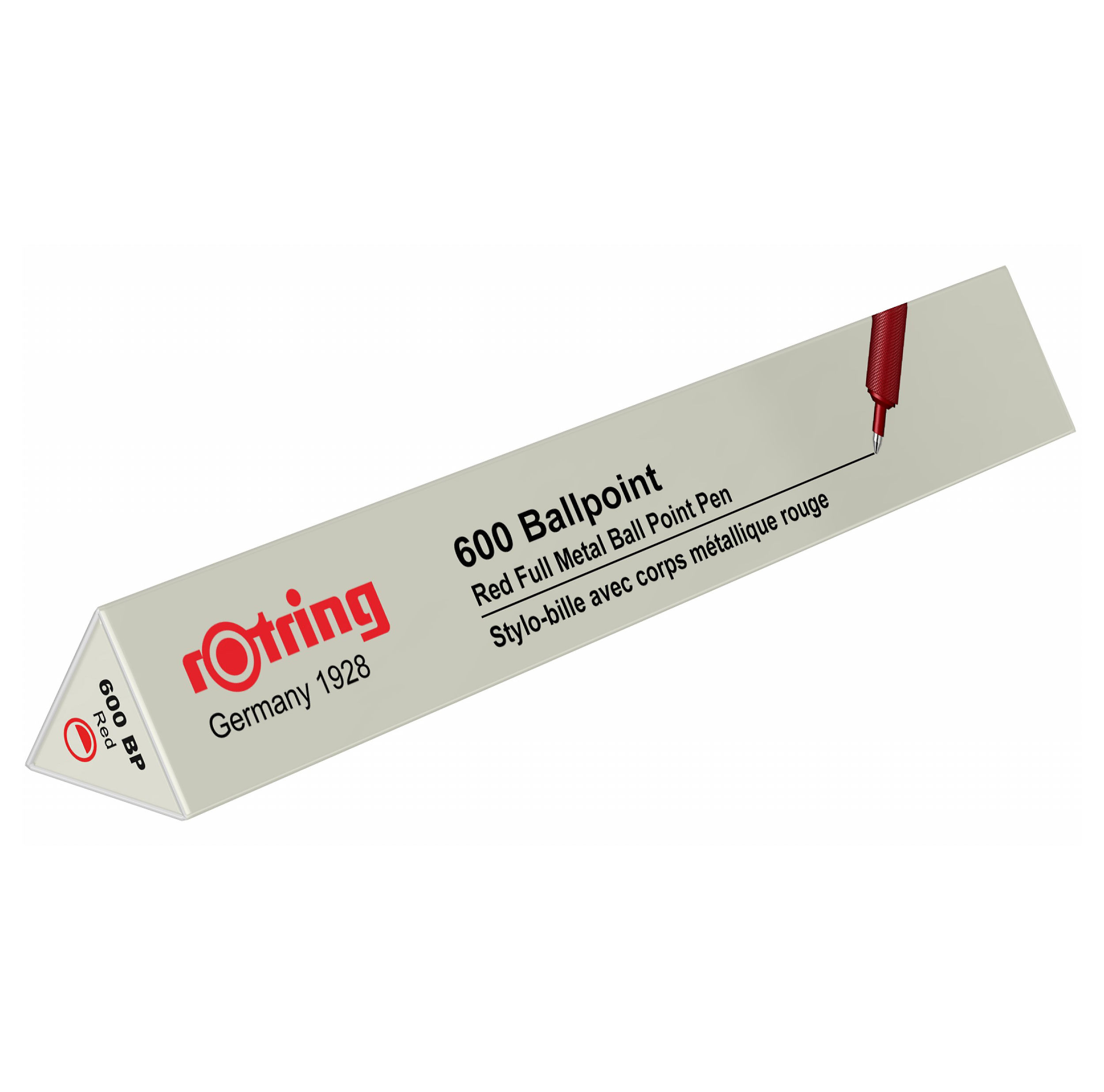 rOtring 600 Stylo bille, Rouge, recharge noire pointe moyenne. Longueur 14 cm. Poids : 24 g.