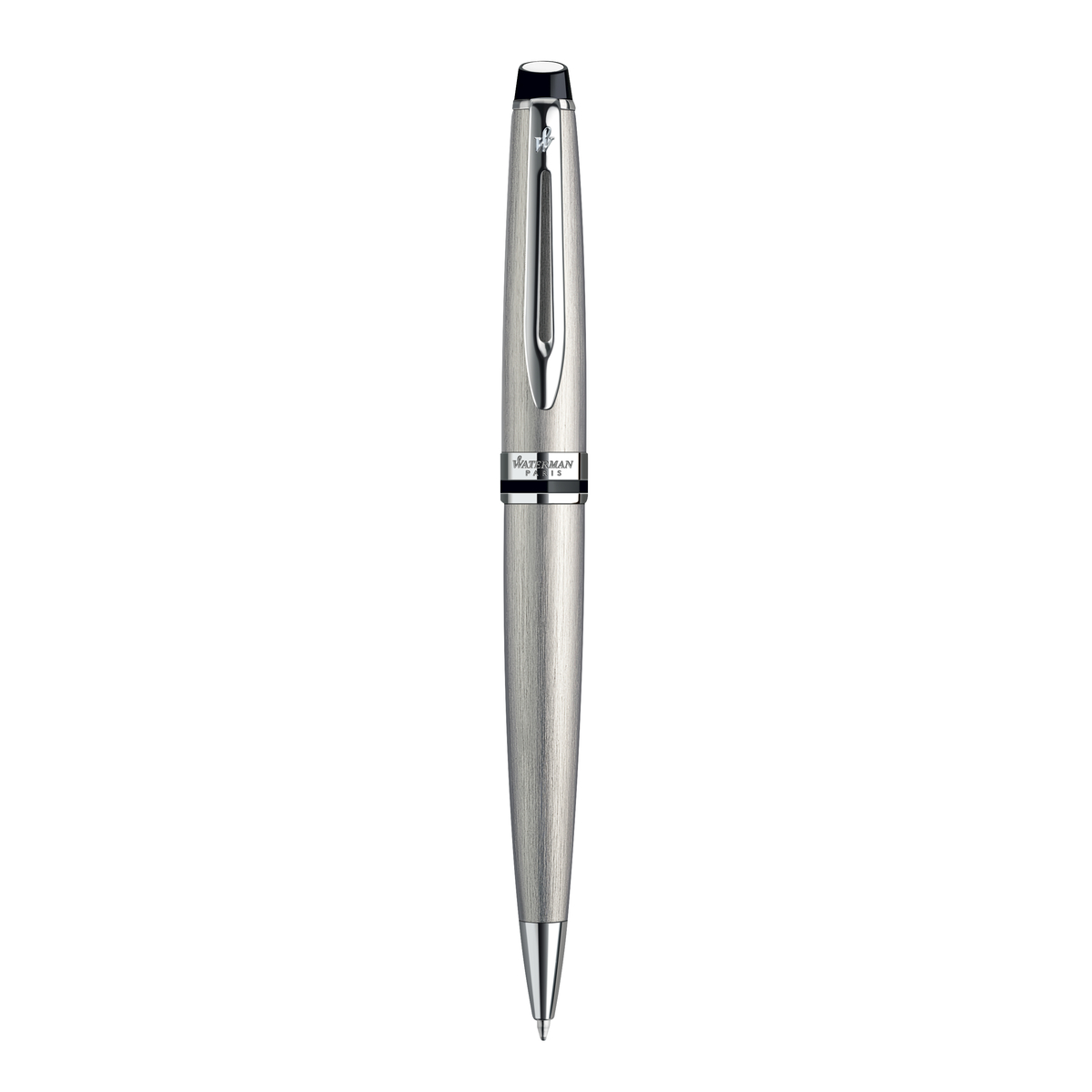 Stylo bille à mécanisme à rotation. Satiné. Attributs chromés. Livré dans son écrin luxe et avec sa garantie Waterman.
