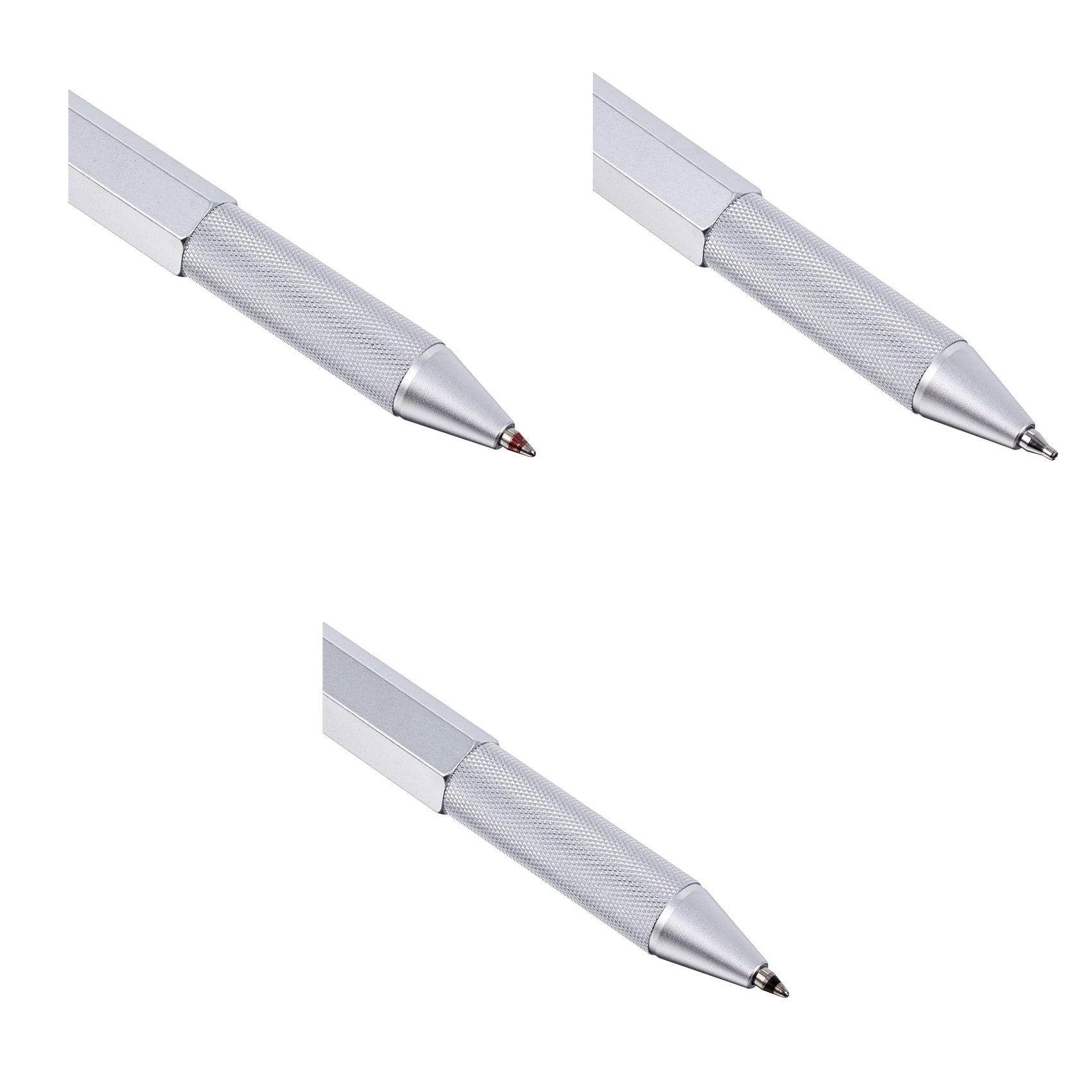 « Passez rapidement du stylo au porte mine avec ce stylo multi couleurs et porte mine 3 en 1 rOtring 600. Avec ses 3 modes d’écriture (2 couleurs de stylo bille et 1 porte mine), cet instrument d’écriture emblématique est l’outil professionnel idéal pour les tâches de rédaction technique, d’esquisse ou de dessin. Le corps de cet hybride stylo-porte mine est entièrement métallique et son poids est parfaitement équilibré. Sa forme hexagonale évite que le stylo glisse sur les tables à dessin et permet d’écrire et de dessiner sans fatigue. De plus, le grip en métal moleté évite que l’outil glisse des doigts. En ce qui concerne le porte mine, le manchon fixe guide-mine limite la casse des mines et offre une vue dégagée de la page, pour des tracés à la règle précis. L’indicateur de dureté de la mine ajustable permet d’identifier rapidement le crayon que vous avez en main. Enfin, le corps noir de ce luxueux stylo-porte mine lui confère une allure moderne et sophistiquée et renferme des recharges noire et rouge pour stylo bille, ainsi qu’une mine de 0,5 mm.