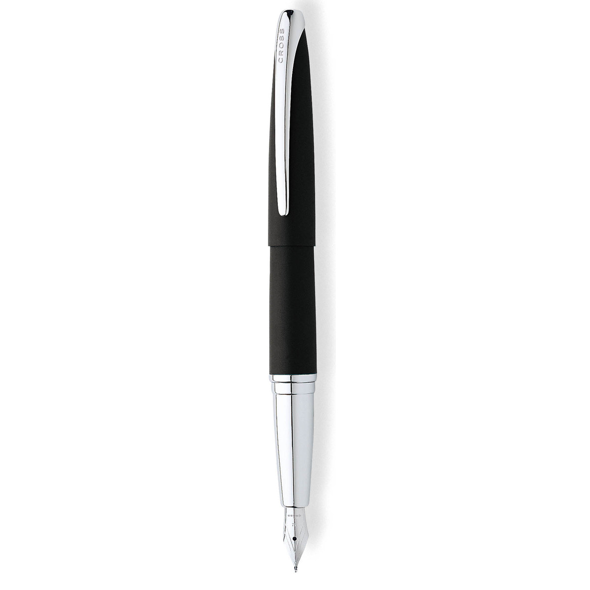 Stylo plume à cartouches. La marque Cross à l'accent européen. Lignes rondes et fuselées. Laque noire. Garantie à vie.