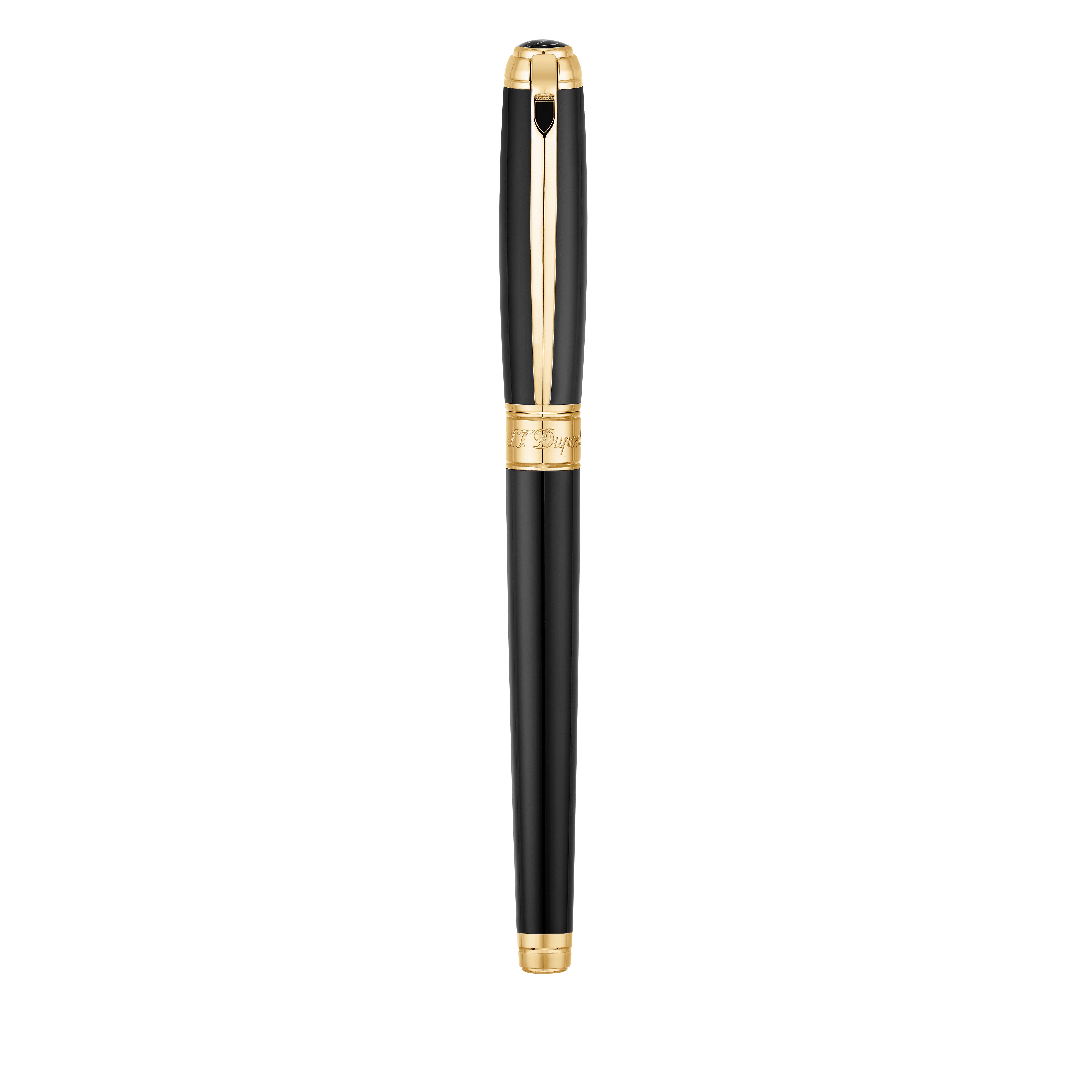 Stylo plume S.T. Dupont Ligne D Laque noire naturelle Or jaune Médium avec son repose stylo