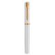 - Une silhouette élégante dotée d’un corps et d’un capuchon rehaussés d’une finition laquée blanche brillante. Le clip Waterman emblématique à double branche et un large anneau plaqué or sur le capuchon confèrent une distinction raffinée à ce magnifique instrument d’écriture.