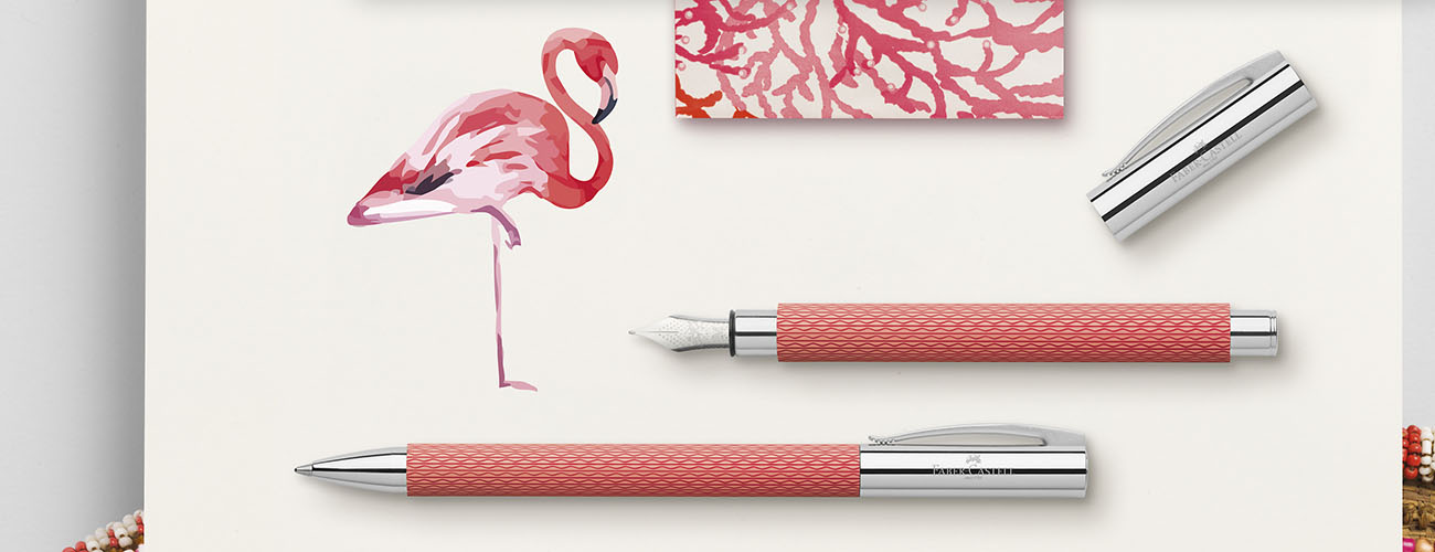 La ligne AMBITION se caractérise par un design clair et filigrane. Le corps est serti de différentes matières telles que le bois, la résine précieuse et l’acier inoxydable brossé ce qui font de ces instruments d’écriture des objets exceptionnels. Le design de la ligne « OpArt » séduit par la beauté des matériaux utilisés et ses couleurs fraîches et vives. Le corps en résine précieuse guillochée est disponible en 3 couleurs différentes: Black Sand, White Sand et Flamingo.