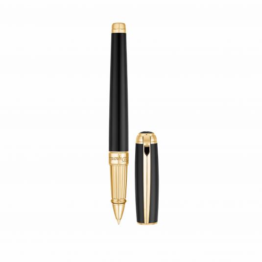 Roller S.T. Dupont Ligne D Laque naturelle noire Or jaune Large avec son support à stylo
