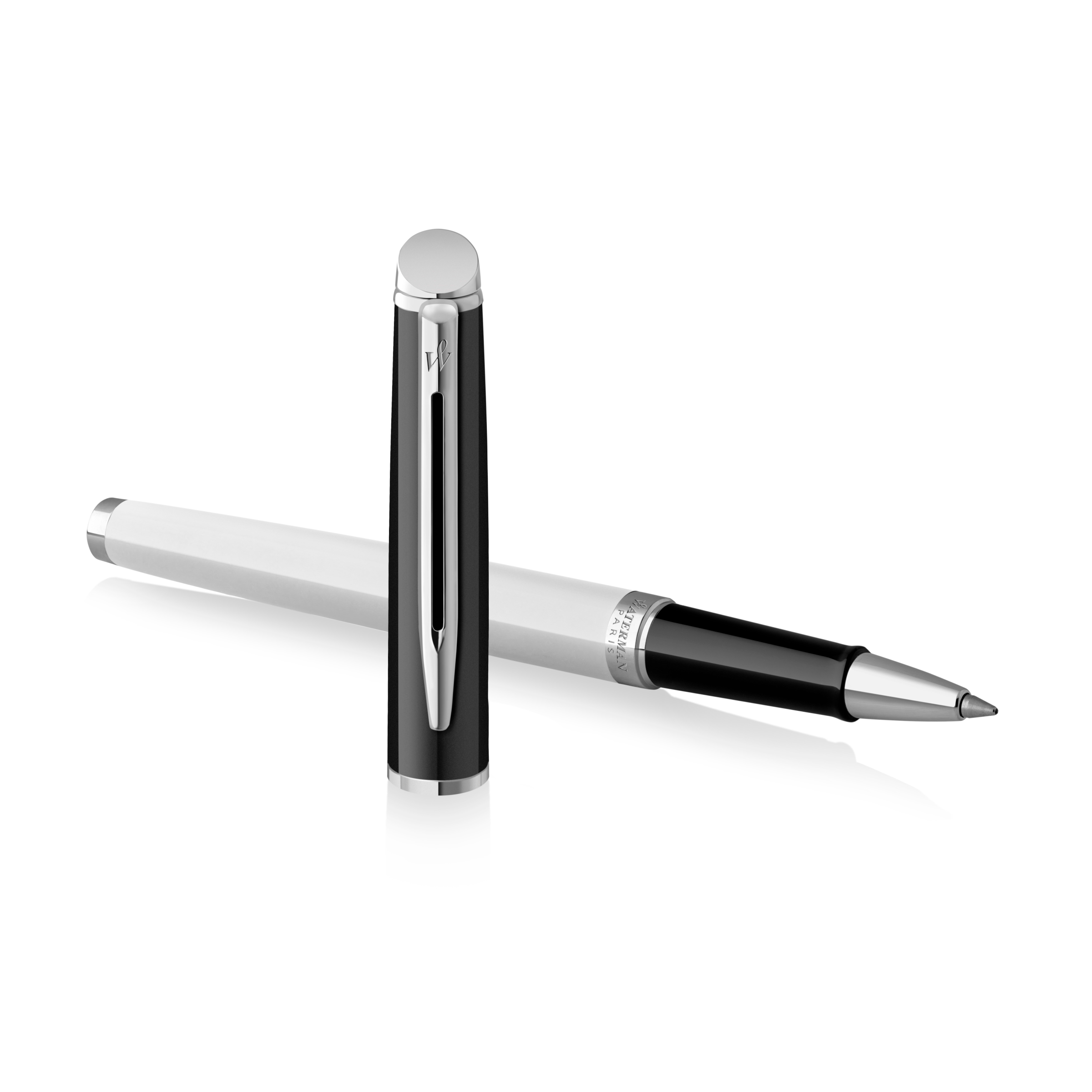 Waterman Hémisphère Stylo Roller, Laque Noire et BLanche avec attributs Palladium Pointe Fine. Un stylo roller de caractère inspiré par le style coloré audacieux de cette saison, affichant une couleur raffinée et une silhouette fine. Corps Blanc avec Capuchon Noir, clip à double branche emblématique et finition plaqués palladium. Pointe de stylo roller fabriquée avec un savoir-faire exceptionnel et associée à de l’encre liquide pour un confort et une ergonomie absolus. Fabriqué en France, grâce au savoir-faire de Waterman et à plus de 130 ans d’expérience. Présenté dans un étui cadeau Waterman haut de gamme, le cadeau parfait à offrir ou à s’offrir.