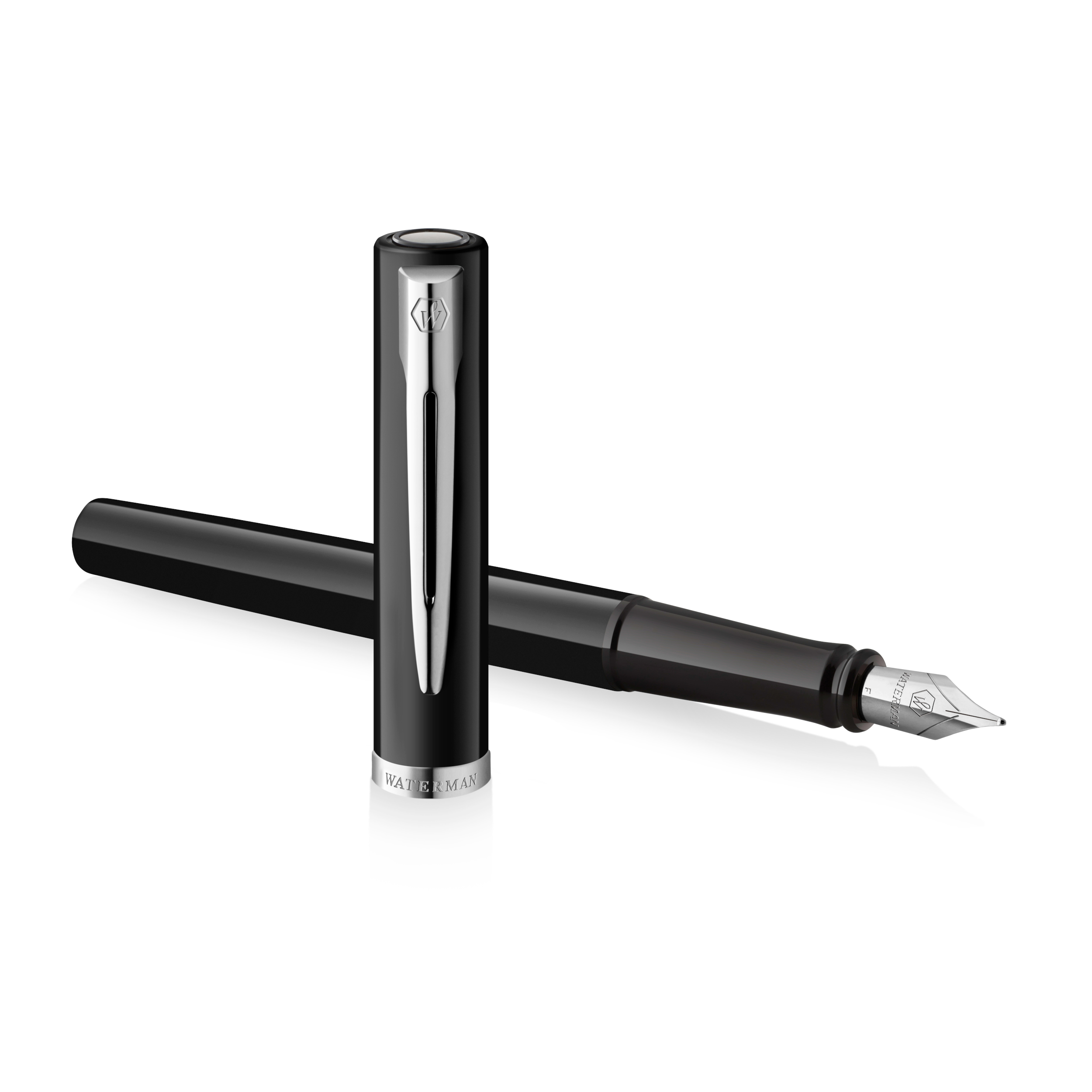 • Une silhouette élégante dotée d’un corps et d’un capuchon rehaussés d’une finition laquée noire brillante. Le clip Waterman emblématique à double branche et un large anneau plaqué palladium sur le capuchon confèrent une distinction raffinée à ce magnifique instrument d’écriture.